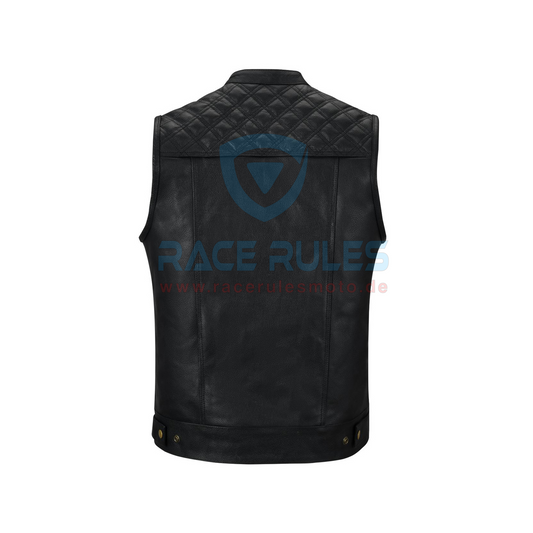 Men’s Black Leather Motorcycle Vest – Quilted Shoulders & Club Style